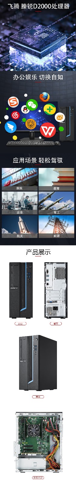 浪潮 CE520F 国产目录商用台式计算机(腾锐D2000/8G/1T HHD+256G SSD/1G独显/23.8英寸)