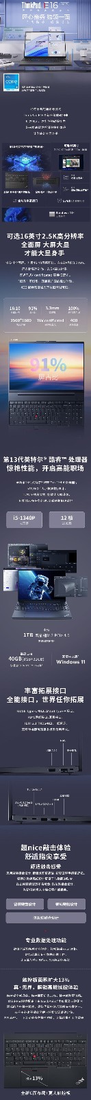 联想/LENOVO ThinkPad E16 便携式计算机 16英寸轻薄商务办公笔记本电脑(i7 1360P 16G 512G SSD)