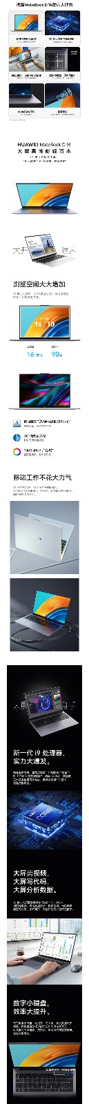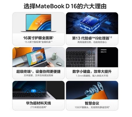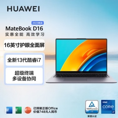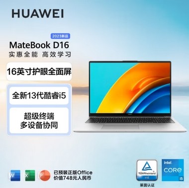 华为 MateBook D16 便携式计算机 13代酷睿版 16英寸护眼全面屏轻薄笔记本 i5 13500H 16G 1T固态