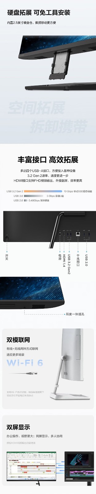 联想/LENOVO xiaoxin24 台式计算机 23.8英寸一体机 i5-13420H 16G 512G固态