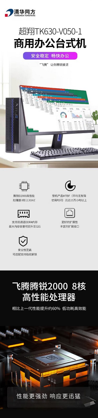 清华同方/THTF TK630-V050 台式计算机(飞腾D2000/8G/256G/2G独显/23.8英寸)国产信创产品