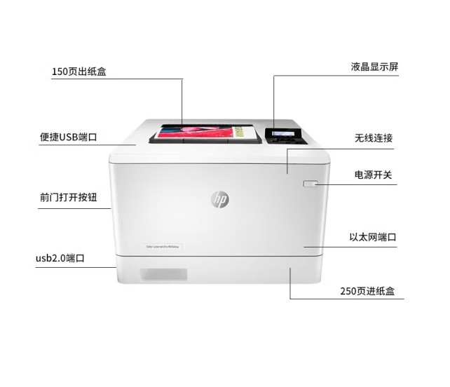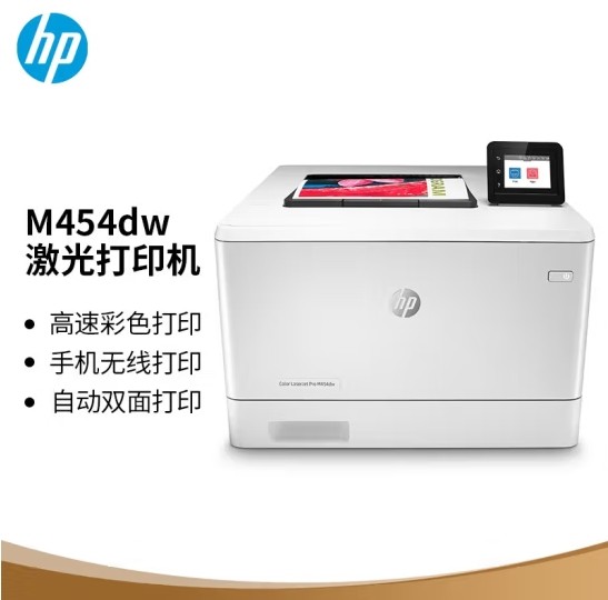 惠普/HP M454dw A4 彩色打印机 高速自动双面打印 无线/有线网络连接 彩色激光单功能打印机