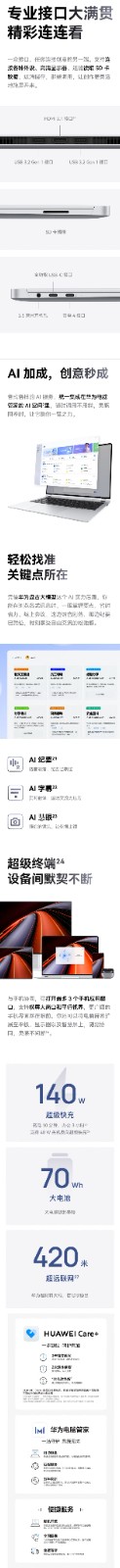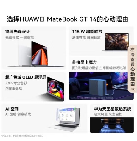 华为/Huawei MateBook GT 14 Ultra 5 16G 1Tssd 便携式计算机 银色