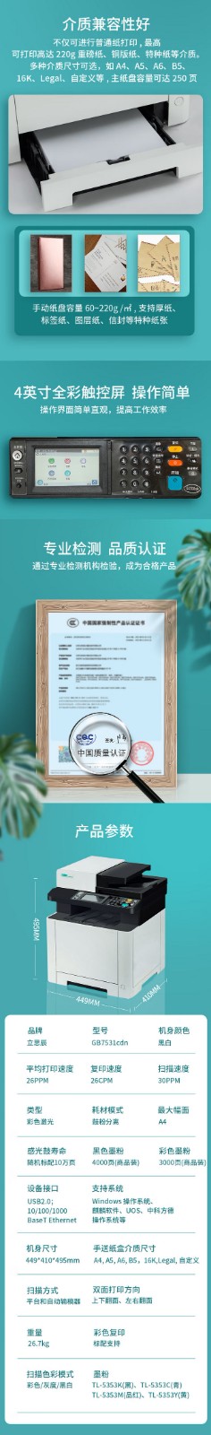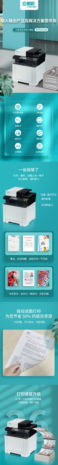 立思辰/LANXUM GB7531cdn A4 彩色打印机 功能一体机 打印/扫描/复印 自动双面 自动输稿器