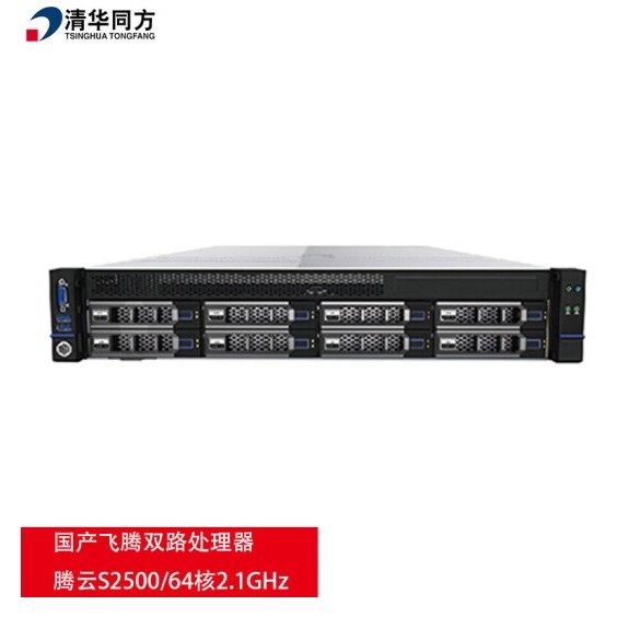 清华同方国产化信创 超强F520-M1+机架式服务器(飞腾双路2颗 腾云S2500/64核2.1GHz/128G/240G+2T HDD/800W*2/2U)