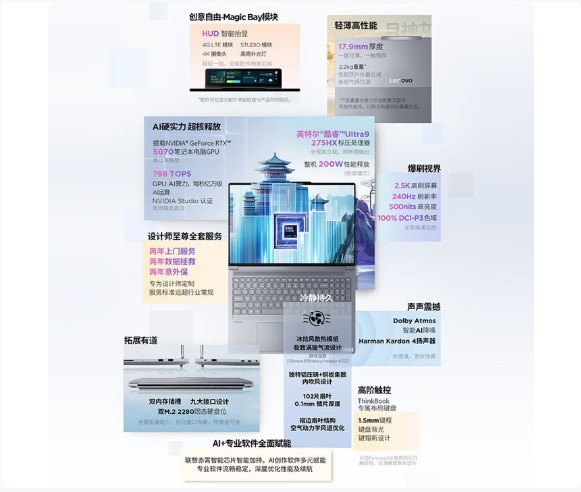 联想/LENOVO ThinkBook16p Ultra9 275H 32G 1TB RTX5070 便携式计算机 设计师笔记本电脑