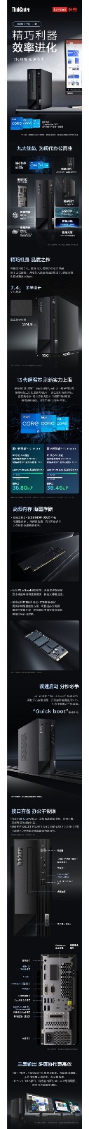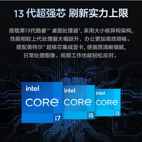 联想 ThinkCentre S500 13代酷睿 商用办公台式计算机( i5 13400 16G 512GB固态硬盘+1TB机械 23.8英寸显示器)