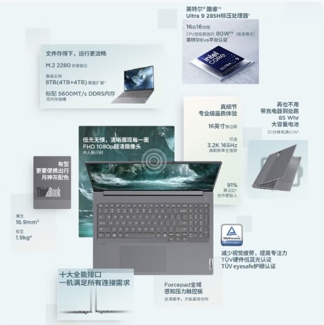 联想/LENOVO ThinkBook 16+ Ultra9 285H 32G 1TSSD 便携式计算机 16英寸 3.2K商务笔记本电脑