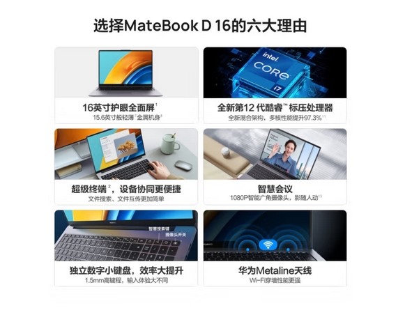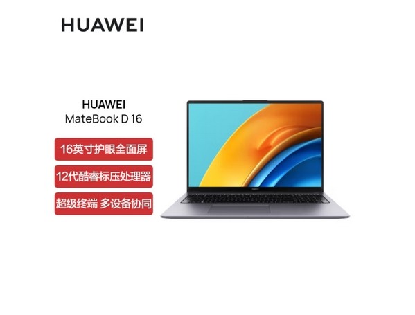 华为 MateBook D16 便携式计算机 12代酷睿版 轻薄笔记本电脑i5-12450H 16G 1T固态