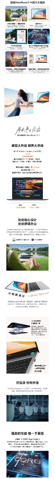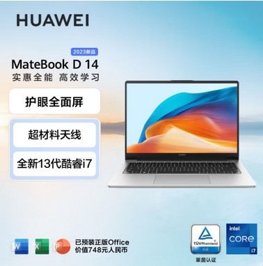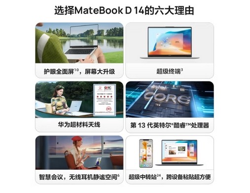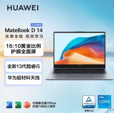 华为 MateBook D14 便携式计算机 13代酷睿版 14英寸护眼全面屏轻薄笔记本 i5 1340P 16G 512G固态