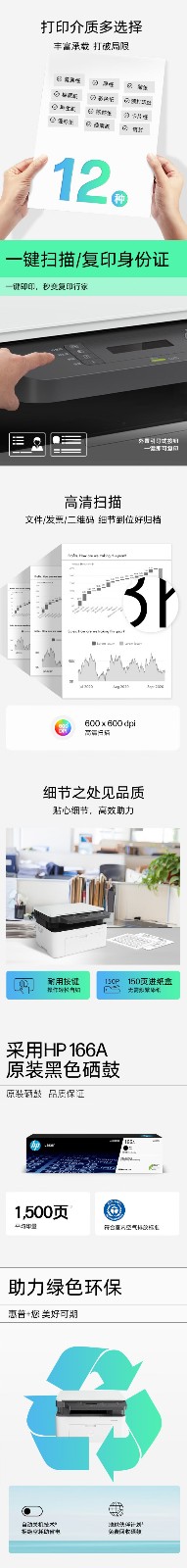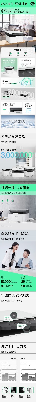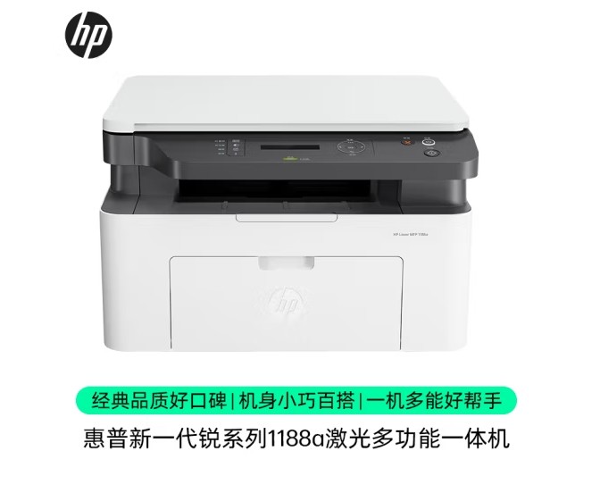 惠普/HP 1188a A4 黑白打印机 激光多功能商务办公一体机 三合一打印复印扫描打印机(136a升级版)